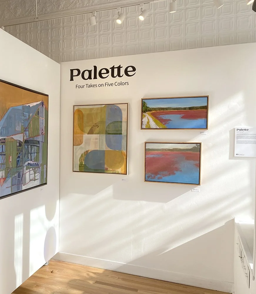 Palette: Four Takes on Five Colors, an exhibit presented by 13FOREST Gallery featuring new paintings by Linda Cordner, Bonita LeFlore, Deborah Peeples and Heather Pilchard.