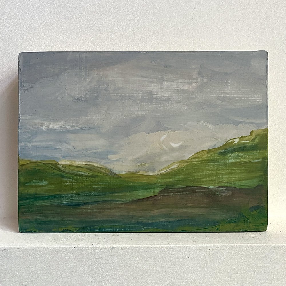 Like little gems, these tiny paintings range in size from 4”x4” to 10”x8”. They are on a 1” deep board and can sit on a shelf or are ready to hang on your wall. They like to travel in pairs or small groups.